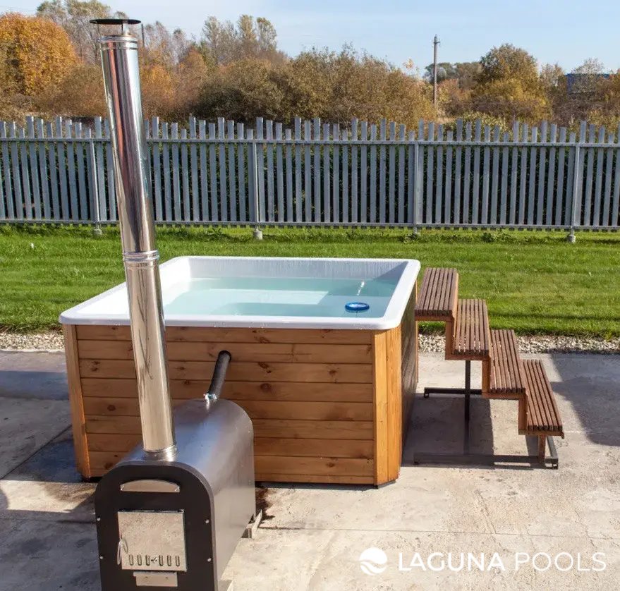 Квадратная уличная купель с дровяной печью